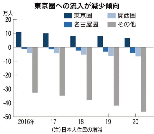 都道府県別に人口の変化をみると、日本人が前年に比べて増えたのは東京、神奈川、沖縄の3都県しかない。東京都は0.5%増の1325万7596人だった。