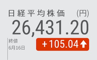 16日の東京株式市場で日経平均株価は5営業日ぶりに反発し、前日比105円04銭(0・40%)高の2万6431円20銭とこの日の安値で終えた。米連邦準備理事会(FRB)がインフレ抑制に強い姿勢を示し、米金融政策を巡る不透明感が和らいだことから、前日の米株式相場が上昇した。この流れを受け、東京市場でも幅広い銘柄に買いが入った。日経平均の上げ幅は600円を超える場面があったが、主力銘柄には戻り待ちの売りも出て午後に上げ幅を縮めた。