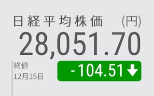 午後に入ると日経平均は徐々に下げ幅を拡大した。来週からクリスマス休暇に入る海外投資家が多く、持ち高調整の売りが出やすかった。欧米の利上げで来年は景気後退色が強まるとの見方から、海外勢はグローバルに株式のウエートを引き下げ始めているとの声も聞かれた。